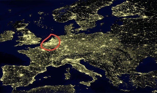 8. В тёмное время суток Бельгия освещается гораздо ярче любой другой страны из-за густой автомобильной сети, которая освещается почти на все 100%. Астронавты НАСА даже назвали её «Бельгийское окно» из-за того, как она видна из космоса.