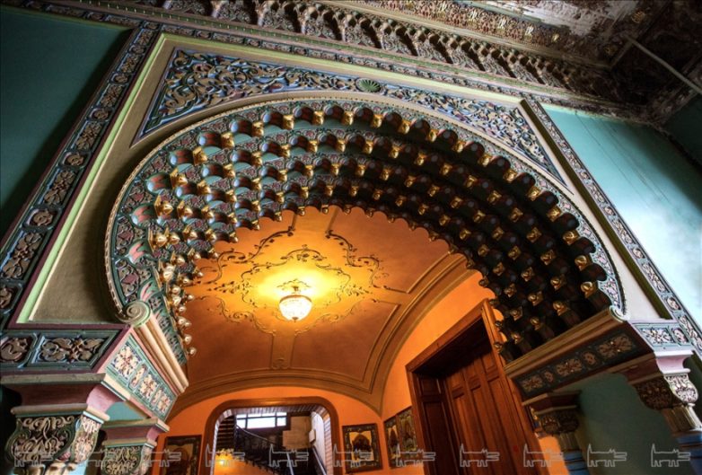 Интерьеры особняка устроены согласно моде конца XIX века: здесь можно встретить различные интерпретации ренессанса, барокко и даже мавританского стиля.