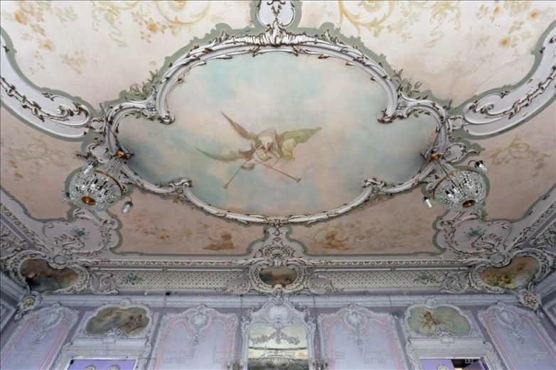 Второй этаж открывает большая, в пять осей, гостиная с кариатидами посредством трех широких проемов соединяется с бальным залом — самым эффектным помещением особняка.
