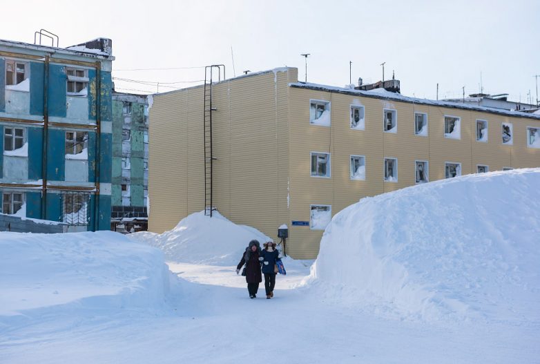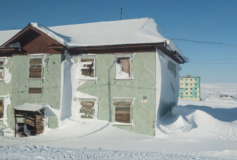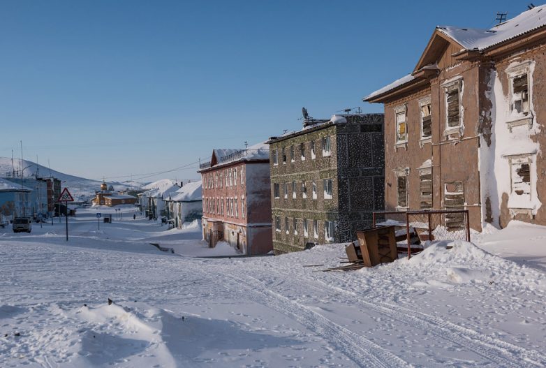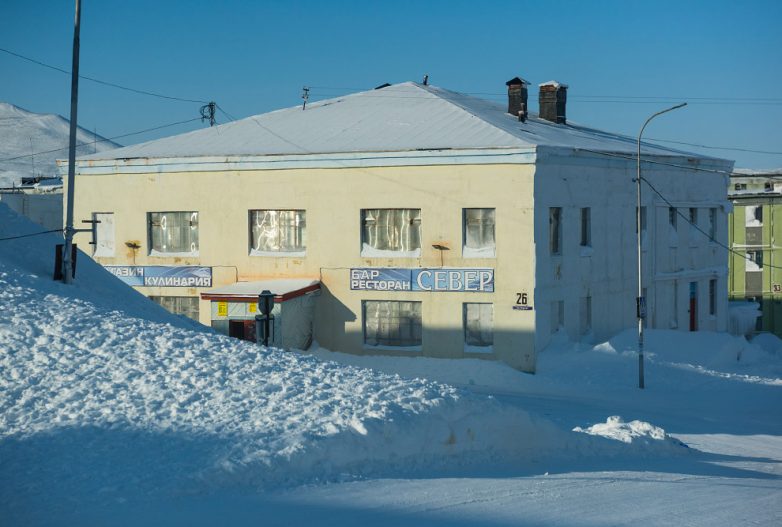 7. В городе есть несколько больших улиц. В центре много деревянных домов, окна которых когда-то заботливо заколотили, но теперь в щели набивает снег. Сперва мне показалось всё очень похожим на Териберку, но, приглядевшись, я увидел больше истории. И вообще, считаю что тут пропадают шикарные декорации. Правда, город находится в пограничной зоне и разрешат ли там снять фильм? Но локации тут что надо!