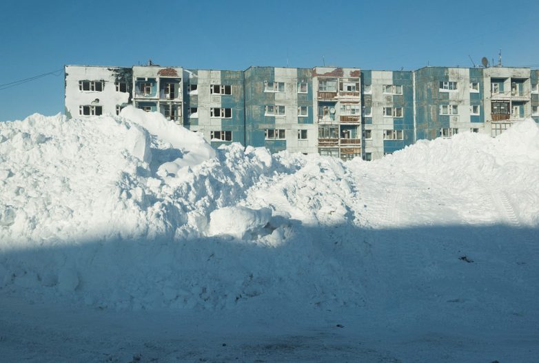И только утром, выйдя на улицу, я оценил масштабы здешних просторов, заброшенность и обветшалость города и количество снега вокруг него!