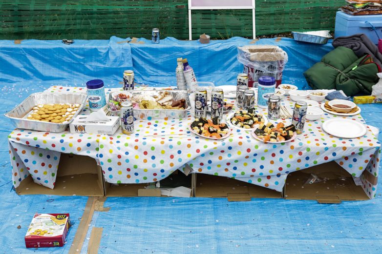 Японская ассоциация сакуры составила список сотни лучших мест для любования сакурой, причём таковые были найдены в каждой префектуре. Видимо, этот накрытый стол для пикника находится в одном из них.