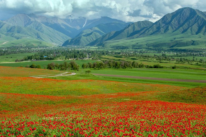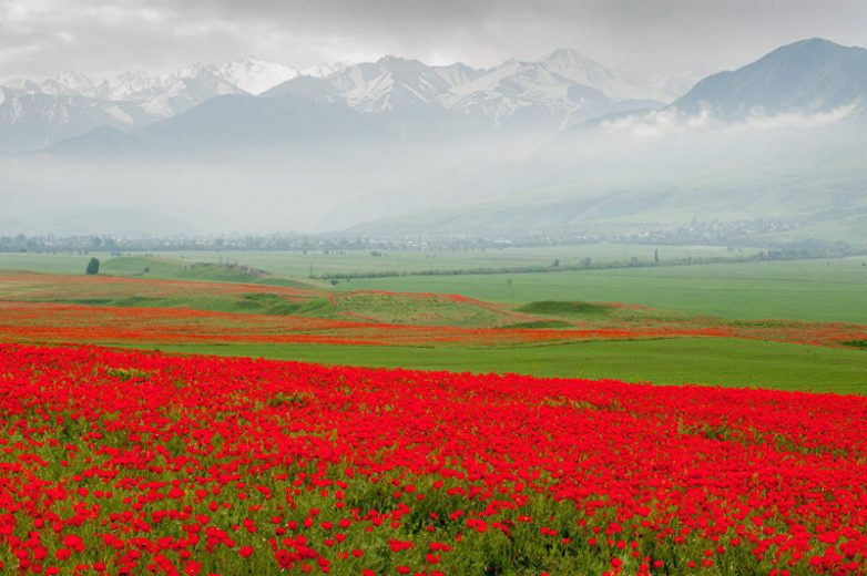 В конце весны по всей стране расцветают полевые маки. Холмы и поля окрашиваются в ярко-красный цвет.Ученым известно около 100 видов мака. В Кыргызстане распространено около 70, особенно мак-самосейка, или Papaverales rhoeas, который произрастает во всех областях страны. Этот цветок очень нежный и быстро погибает, если его срывают.
