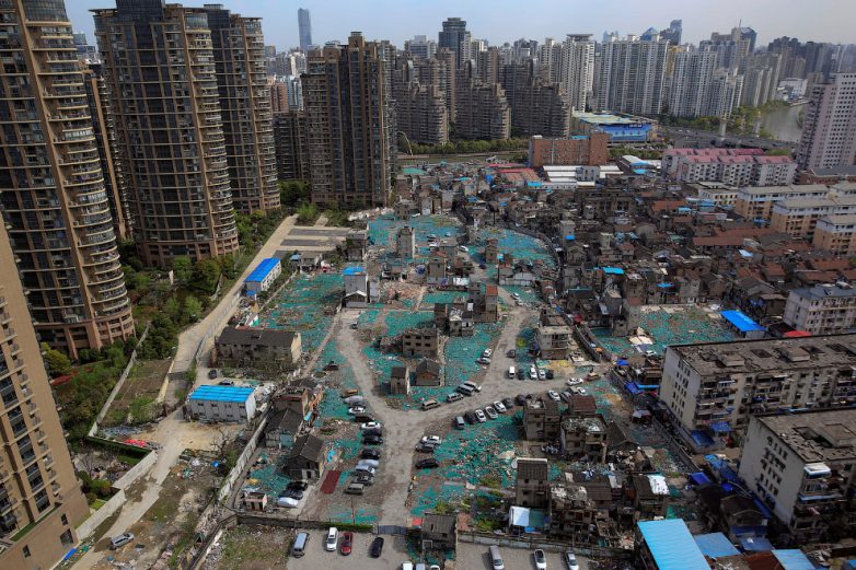 Причина такого контраста проста: сотни людей засели на дорогой земле и отказались переезжать в предложенные варианты по расселению. В Китае такие необычные нам случаи сплошь и рядом.