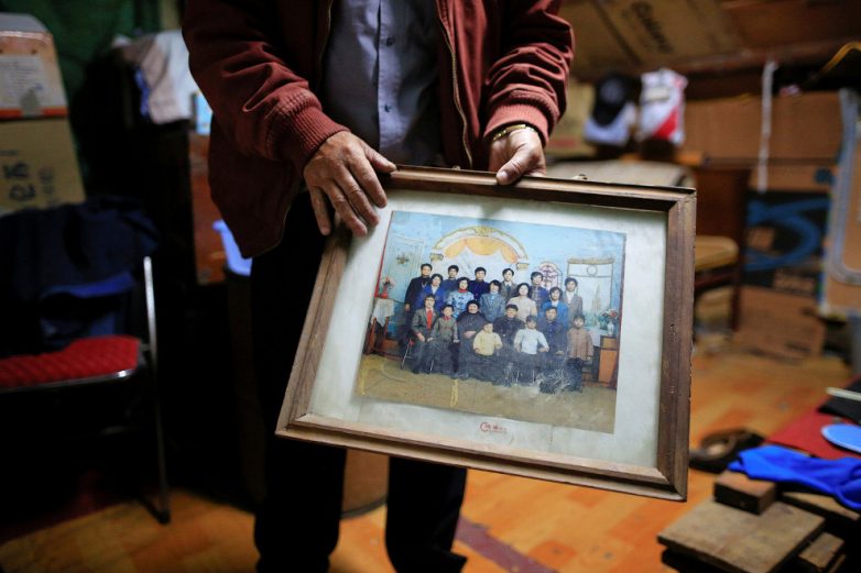 Один из жителей показывает семейный портрет. Все его родственники жили именно здесь.