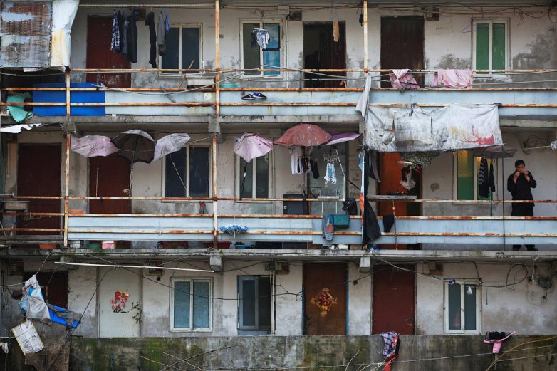 Этот небольшой островок из ветхих домов находится на окраине Шанхая. Это выглядит, как настоящая жизнь в каменных джунглях: со всех сторон над тобой нависают бетонные махины и с каждым годом всё ближе надвигаются небоскребы.
