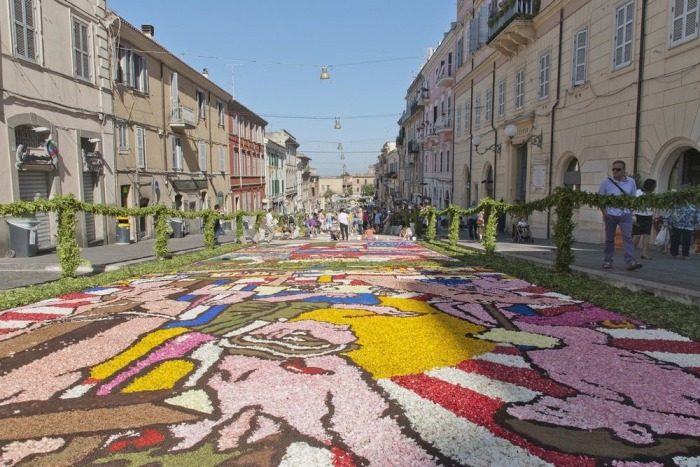 Многие туристические путеводители рекомендуют посещать Италию в мае или июне. А все потому, что в это время по всей стране проходят многочисленные цветочные парады. Городские улицы усыпаны цветочными лепестками, образующими целые полотна, начиная от геометрических орнаментов, и заканчивая репродукциями картин известных живописцев.