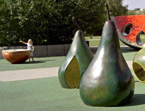 Если вы хотите, чтобы ваши дети играли на детской площадке, да ещё и наслаждались ароматами фруктов, в виде которых сделаны всевозможные горки, качели, турники и песочницы, то Игровая площадка фруктов и запахов, находящаяся в парке культуры Лильехольмен — идеальное для этого место!