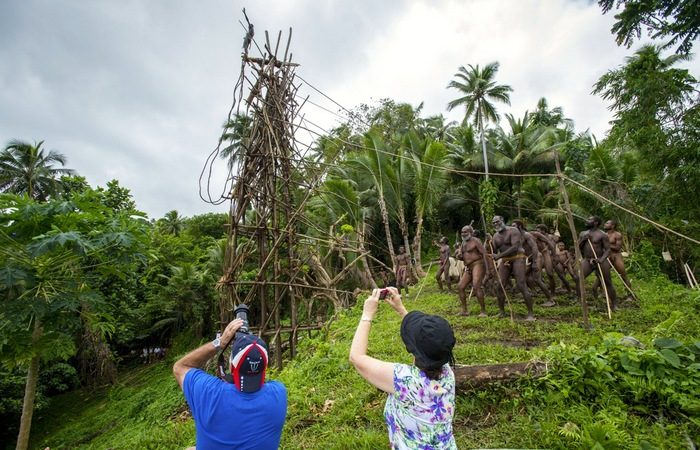 Люди со всего мира прибывают на остров в южной части Тихого океана, чтобы понаблюдать за ритуалом Нагхол или прыжками в землю. Мужчины на острове Пентекост во время Нагхола развлекаются тем, что спрыгивают с верхушек 20-30 метровых деревянных башен, привязавшись за лодыжку виноградной лозой. Этот своеобразный местный банджи-джампинг далеко не всегда безопасен: сплошь и рядом встречаются травмы, а иногда и смертельные случаи.