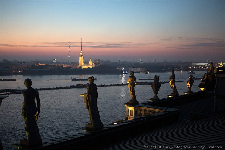 Соседние к Дворцовой набережной крыши патрулировались милицией, но некоторым гражданам все же удалось пробраться на высокие точки.