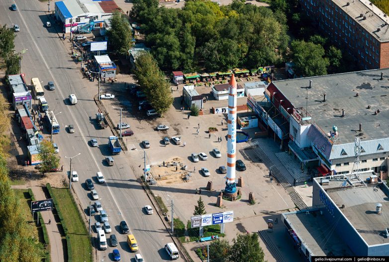 45. Памятник омичам, внёсшим значительный вклад в освоение космоса, — оригинал ракеты «Космос-3М», предоставленный ПО «Полёт».