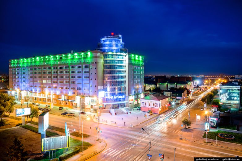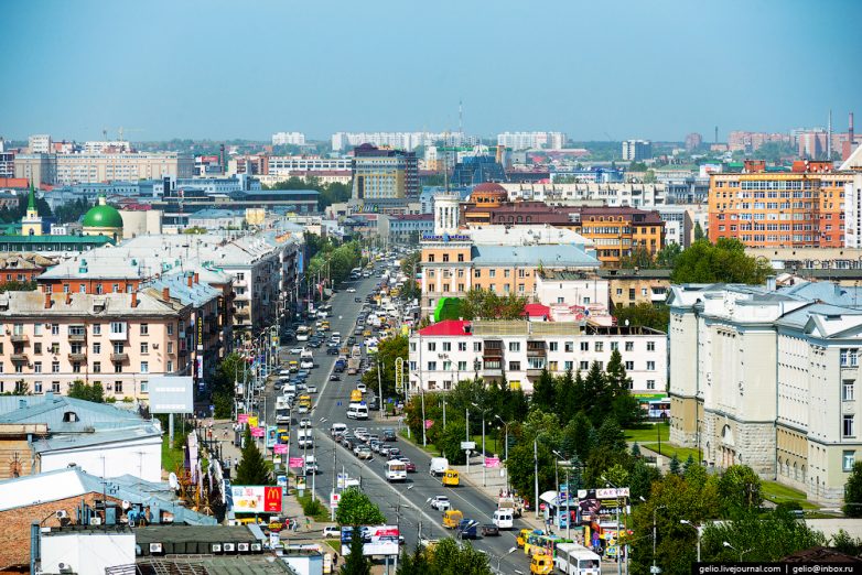 Центральная улица Омска проходит от Соборной площади через Юбилейный мост до улицы Маяковского, в районе исторической застройки.