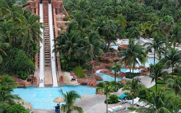 Прыжок веры — отличное название для аттракциона, который может испугать до крика даже прожженного экстремала. Горка, которая начинается в верхней части храма Атлантиды, проводит райдеров сквозь прозрачный тоннель, идущий сквозь заполненную акулами лагуну.