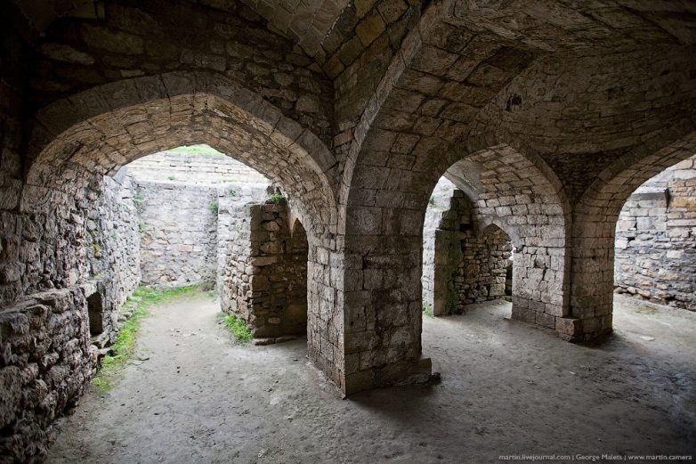 Внутри цитадели сохранились древние ханские бани с окошками в крышах и здания, дошедшие до нашего времени.