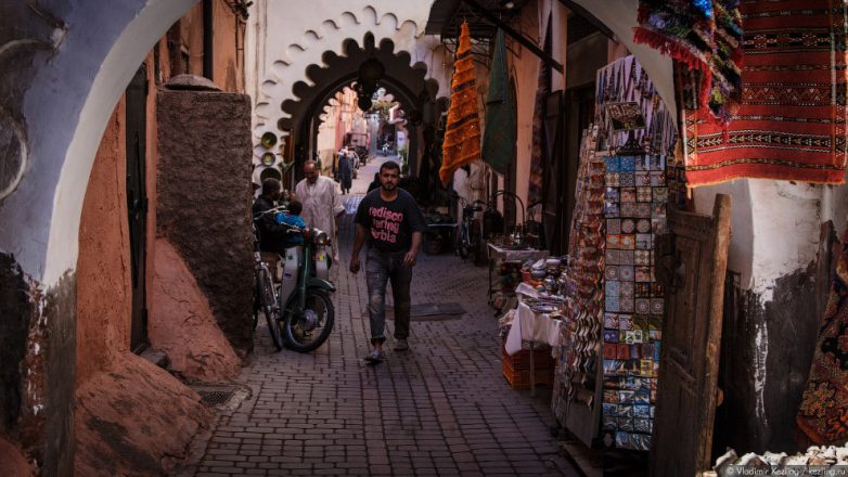 14. В центре любого арабского города на севере Африки расположена медина — старая часть, окружённая крепостной стеной. Медина Марракеша зовётся «Красным городом» по причине рыжеватого оттенка глинобитных зданий и укреплений.