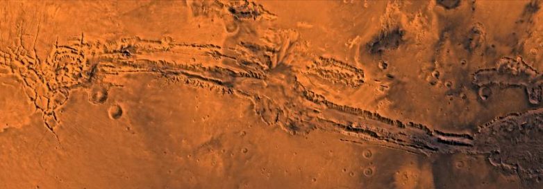 Маринер – самый большой каньон в солнечной системе длиной 4500 км и до 11 км глубиной. Гранд-Каньон в США имеет протяженность всего 446 км и глубину 1,6 км.