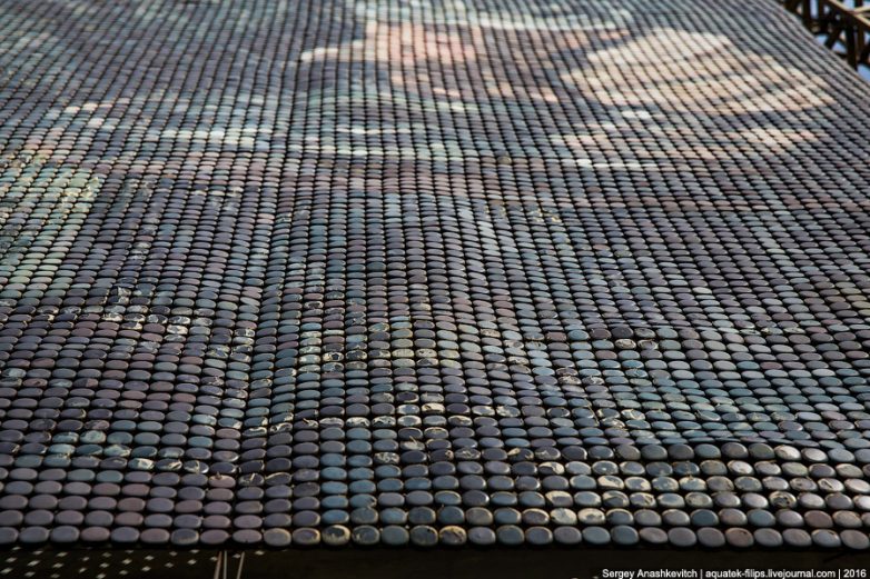 Необычность ее в том, что она выполнена из нескольких десятков тысяч пивных пробок!