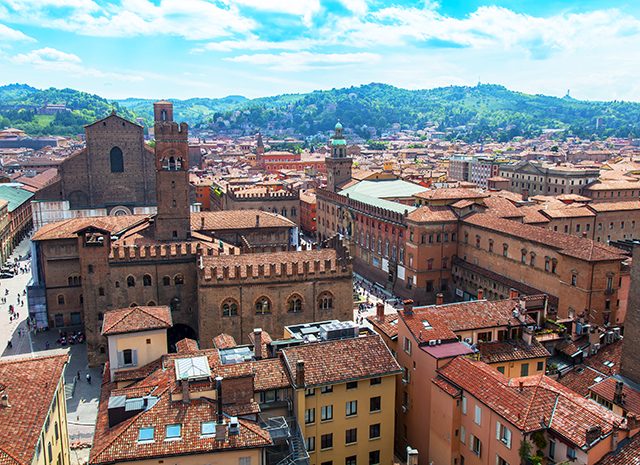 Административный центр Эмилии-Романьи — город Болонья — всемирно известен во многом благодаря своему старейшему университету. Гуляя по Болонье, трудно не заметить, что основная часть ее жителей — студенты. Город интересен своей архитектурой, которая мало изменилась за несколько веков, а также огромным количеством католических соборов, внутри похожих на сокровищницы. Во многих из них до сих пор хранятся средневековые иконы и фрески — настоящие произведения искусства. Если вы приедете в город во время летней жары, гулять все равно будет комфортно, ведь большая часть тротуаров в туристических зонах расположена в галереях. В Болонье около 40 километров галерей и арок! Чтобы посмотреть на город с высоты птичьего полета, необходимо подняться на одну из самых высоких башен в городе — башню Азинелли.