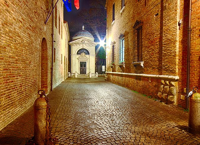 Всего в часе езды от Болоньи расположен средневековый город Равенна, где похоронен Данте. Здесь он дописывал «Божественную комедию» и здесь же доживал свои дни, в 1321 году он умер от малярии. Могила Данте находится в мавзолее рядом с базиликой Сан-Франческо, построенной в V-VI веках. Равенна известна как единственный город в мире, где до наших времен сохранилась византийская мозаика. Обязательно зайдите в базилику Сан-Витале, которая хранит мозаики и барельефы, созданные в период от II (!) до XVIII веков, почти все они в отличном состоянии. Поднимите голову и задержите взгляд на потолке, он расписывался несколькими мастерами в XVIII и не является самым ценным сокровищем базилики, но от его красоты захватывает дух. А внизу, прямо под ногами туристов, — пол, выложенный мозаикой того же XVIII века, который тоже можно разглядывать бесконечно.