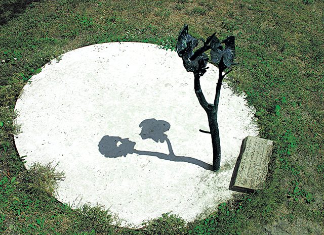 Зайдя в сад, посмотрите налево, вы увидите Меридиан встречи — двух голубей, тени которых при определенном положении солнца «встречаются». Приглядевшись, можно заметить в их тени очертания Феллини и его возлюбленной Джульетты Мазины, которым была посвящена инсталляция. А если пройти чуть дальше, можно обнаружить в глубине сада небольшую капеллу, построенную из камней разрушенных в округе церквей: это памятник духовности Тарковского, который создал в память о друге Гуэрра.