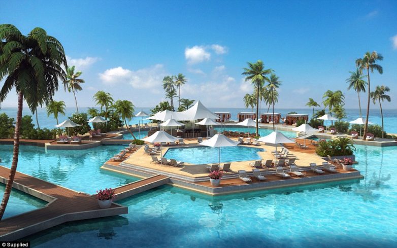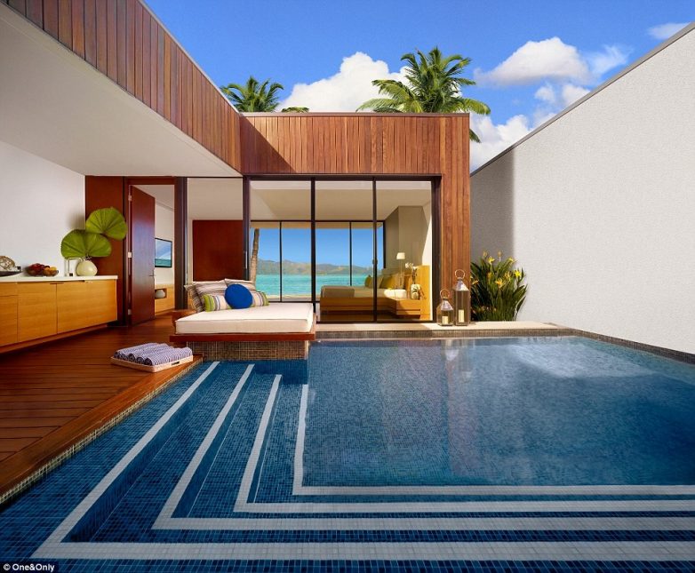 У каждой из вилл на побережье острова есть собственный бассейн.