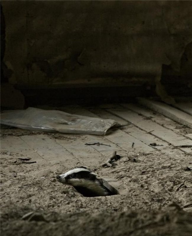 Я выбрала самые трогательные фотографии животного быта в заброшенных домах.