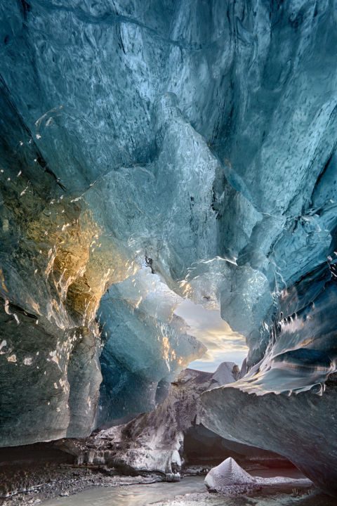 Под вышеупомянутым ледником Йёкюльсаурлоун находится необыкновенно красивая ледяная пещера, излюбленное место всех путешественников-фотографов.