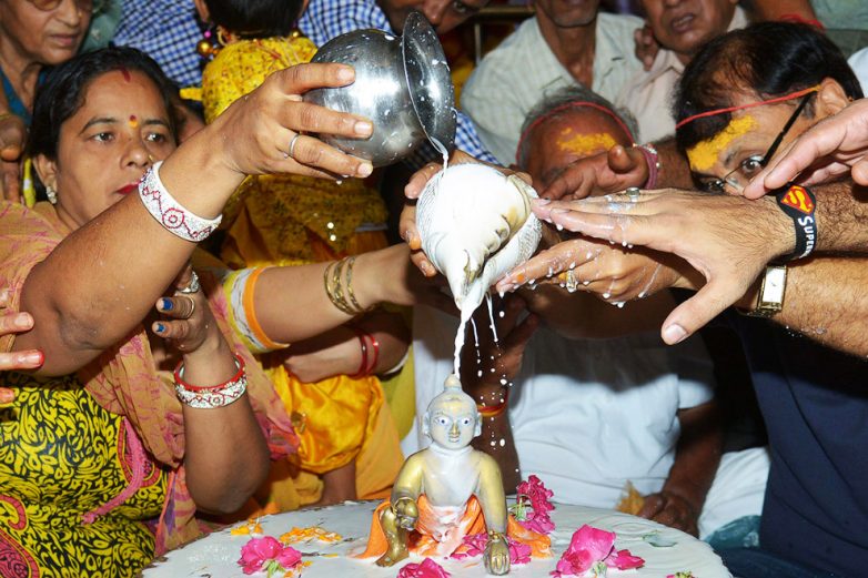 Еще один ритуал — поливание молоком индуистского бога Кришну.