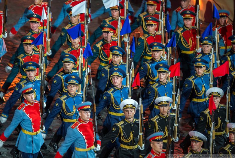 Российская часть программы представлена выступлениями нескольких оркестров, в том числе Почетного караула, Преображенского полка, оркестра Римского-Корсакова, ротой Президентского полка.