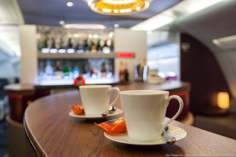 Самое лучшее, что есть на борту А380 — это бар. Ну приятно же прогуляться по салону и посидеть в баре, пообщаться во время полета.