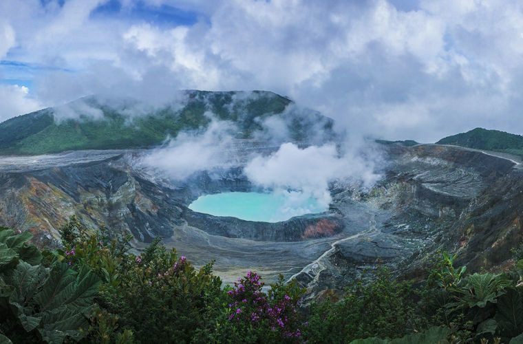 Коста-Рика — это еще и страна вулканов (на сегодня их насчитывается 150). В их кратерах очень часто можно увидеть манящие голубые лагуны. Купаться в них не советуем: вода ледяная, да к тому же может содержать тяжелые металлы. Берега и дно такой лагуны — топкое болото. В попытках подойти поближе густая липкая грязь начнет засасывать ноги настолько сильно и быстро, что придется звать на помощь.