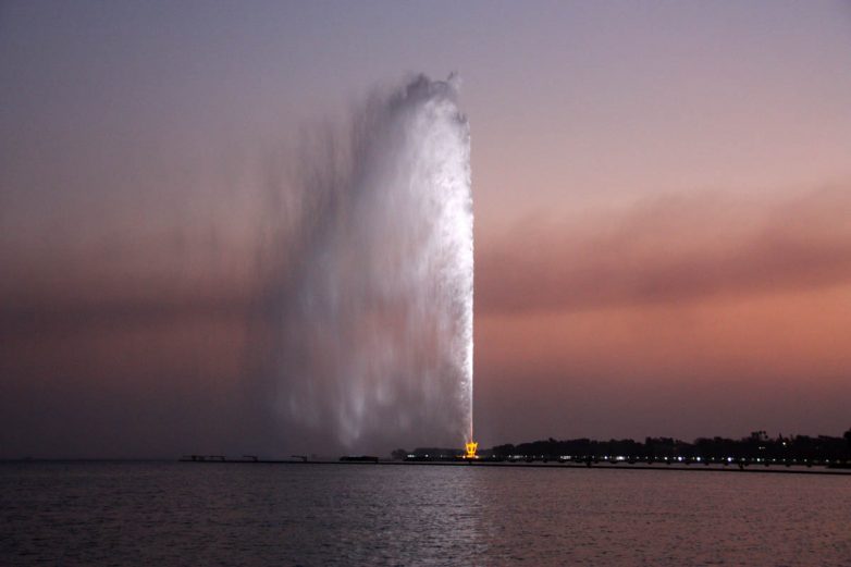 Следующий необычный фонтан расположился на территории города Джедда, от которого он, кстати, и получил свое второе название. На данный момент является самым высоким в мире: только вдумайтесь, струя воды выстреливает на высоту 312 метров, что сравнимо с высотой Эйфелевой башни, например, правда, без антенны. Кстати, изначально поток воды выстреливал на 120 метров, но после реконструкции и доработок удалось добиться столь впечатляющего результата.
