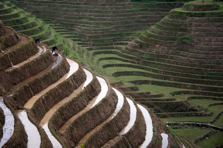 Террасы в Китае. Они очень старые — их сделал пару тысяч лет назад местный народ хани, а недавно их внесли в список всемирного наследия ЮНЕСКО.