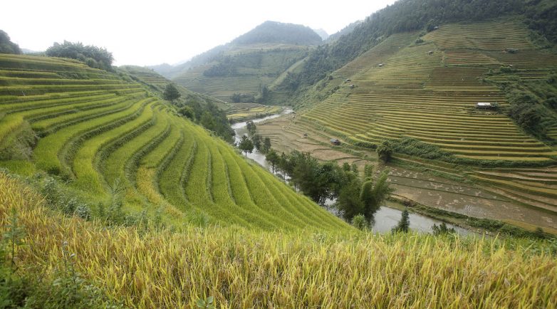 В горных областях рис выращивают на террасах, которые созданы на склонах гор и огорожены валами для удержания воды.