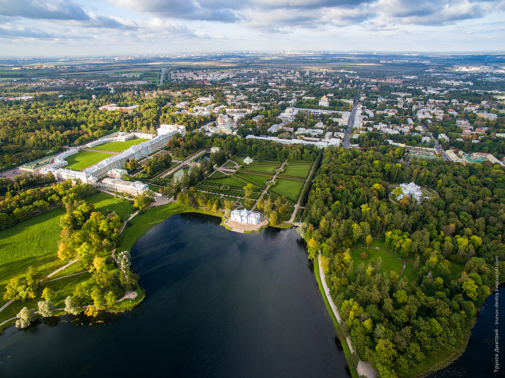 Полетать удалось над всем парком. Екатерининский дворец — бывший императорский дворец, официальная летняя резиденция трёх российских монархов — Екатерины I, Елизаветы Петровны и Екатерины II.