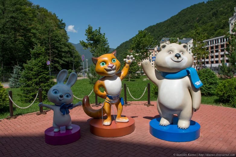 6. Символы Олимпиады. Чтобы их запечатлеть, пришлось подождать. Взрослые россияне любят делать множество кадров у этих объектов.