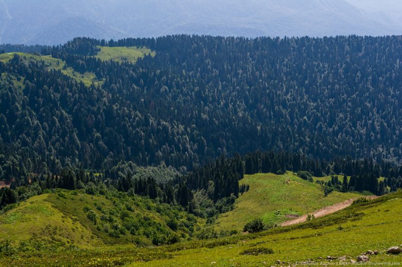 32. Добравшись до вершины, сразу ощущаешь прохладу и жару одновременно. Интересные ощущения, но сгореть без головного убора проще простого. Большинство людей добравшись до вершины ограничивается смотровыми площадками. Мне они почему-то показались очень скучными, и мы решили прогуляться по окрестным тропам, чтобы найти более милые взгляду ракурсы.
