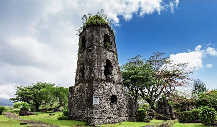 Единственная уцелевшая башня монастыря францисканцев несколько оттеняет природную красоту горы Майон. По преданию, все остальные строения были разрушены как раз во время извержения вулкана, но этот факт исследователи находят спорным.