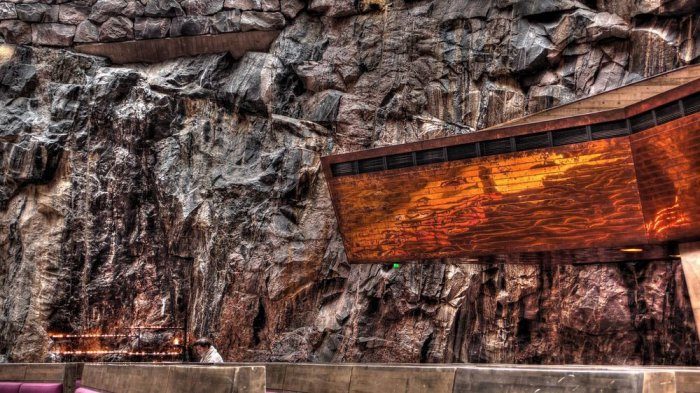 Находится это архитектурное чудо в районе под названием Тёёлё и оно появилось благодаря дуэту братьев Тимо и Туомо Суомалайненов. Проект был сдан в далеком 1969-м году. Большая часть храма расположена под землей, а стеклянный купол сверху дает достаточное количество естественного освещения. Среди местных, храм называют «Церковь-скала». Место популярно среди музыкантов, так как необработанная внутренняя поверхность его стен дает потрясающую акустику. Ежегодно, храм Темппелиаукио посещает не менее полумиллиона туристов.