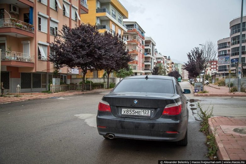 Источник: img12.nnm.meНа одной из улиц увидел БМВ с краснодарскими номерами. Даже с георгиевской ленточкой, присмотритесь. Многие живущие здесь постоянно просто приезжают на машинах из России, через Грузию.