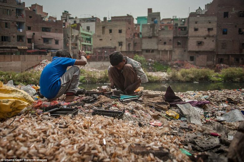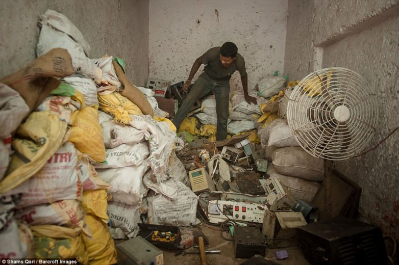 Мухаммад Хамид, владелец лавки металлолома неподалеку от свалки, рассказывает: «Я работаю здесь вот уже 40 лет, добывая медь из отработанных печатных плат. Мои дети тоже работают здесь. Они не ходят в школу, в этом нет необходимости. Они тоже хорошо зарабатывают, а это все, чего я хочу». Местные жители каждый день ходят на свалку за платами. Некоторые добывают цветные металлы отдельно, а кто-то работает с крупными перекупщиками и зарабатывает около 200 рупий (2,5 доллара) в день.