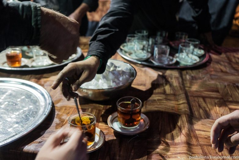 20. Чай пьют везде и много. В случае большой компании воду кипятят в самоваре. Слова «чай» и «самовар» в фарси и русском одинаковы, последнее пришло в Иран из России.