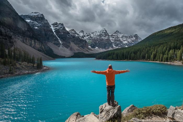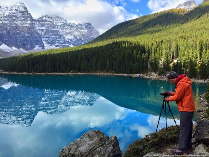 Озеро Морейн — ледниковое озеро в Национальном парке Банф. Да, да, это та самая растиражированная фотография со стоков. Но, друзья, когда ты находишься там, то невозможно оторваться. Я приезжал на озеро трижды и провел здесь целый день, сходив радиальный трек.
