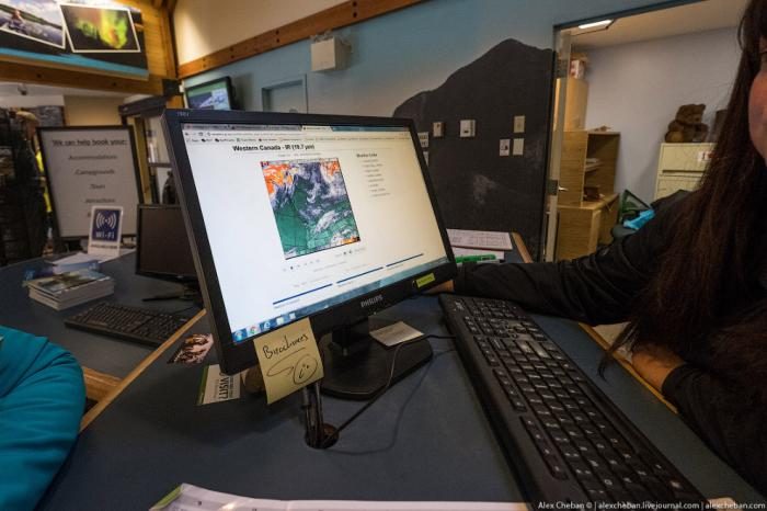 Тут просто фантастическая инфраструктура! Девушка в информационном центре показывает нам динамическую спутниковую карту со снежным фронтом, мы меняем машрут и едем в термальные источники в Radium Hot Springs вместо Джаспера, так как там завтра целый день будет валить снег.