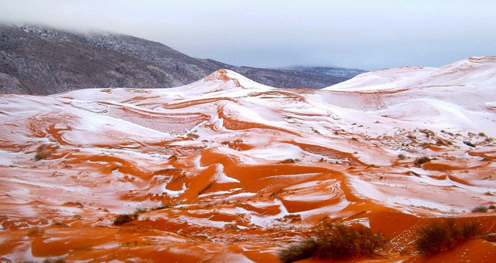 Пустыня Сахара — это явно не то место, где мы ожидаем увидеть заснеженные холмы, ведь там чрезвычайно сухо и жарко. Но эта зима стала особенной: в пустыне первый раз с 1979 года выпал самый настоящий снег.