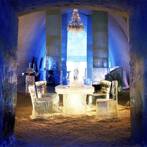 Ледяной Icehotel является первым и самым большим в мире отелем, построенным полностью из снега и льда. Отель расположен в маленькой деревушке на севере Швеции (1100 жителей и 1000 собак). Он построен из 1000 тонн льда с реки Турне и из 30000 тонн смеси снега и льда, укрепляющей структуру конструкций.