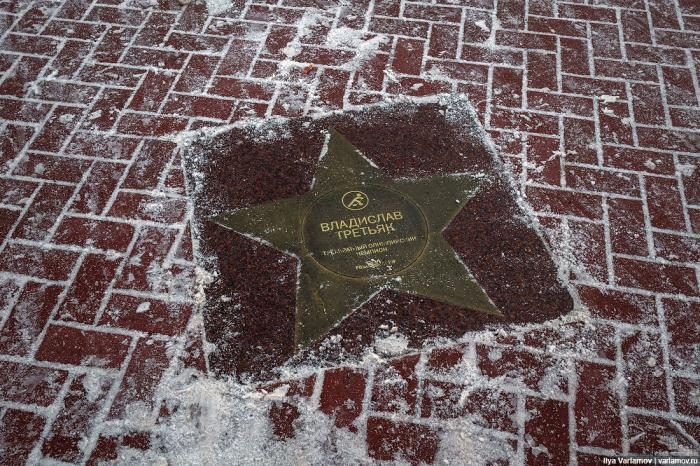 Вот это косяк! Какой-то чудак решил сделать аллею звезд. Звезды вставили в набережную, сделали их из полированного гранита и металла. Я думаю, всем понятно, что зимой, когда снег присыпает эти звезды, люди на них больно падают?