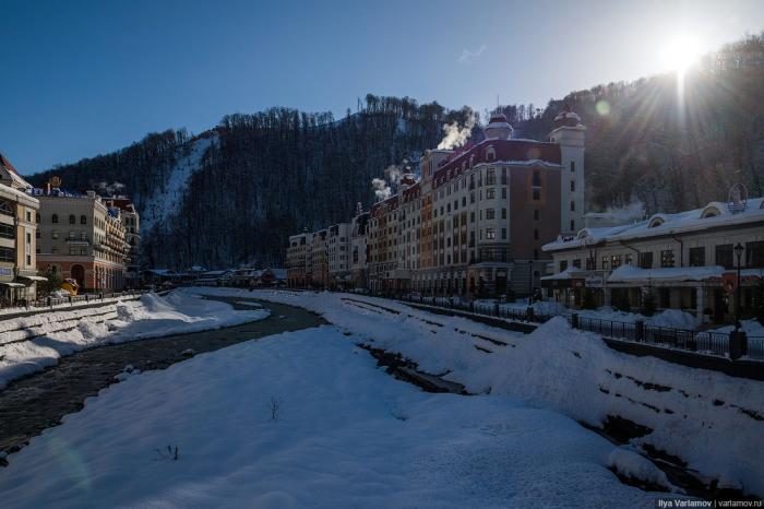 Идея создать горнолыжный курорт мирового уровня в районе Красной Поляны появилась у российских властей ещё в начале нулевых. Вспомните, как по всем каналам тогда показывали Путина на лыжах. Уже в 2003 году «Интеррос» Потанина организовал для этих целей ООО «Роза Хутор». В итоге первую часть комплекса построили и открыли задолго до Олимпиады в Сочи, ещё в 2010 году. «Мы построим в Красной Поляне свой Куршевель», – пообещал Потанин на презентации курорта: