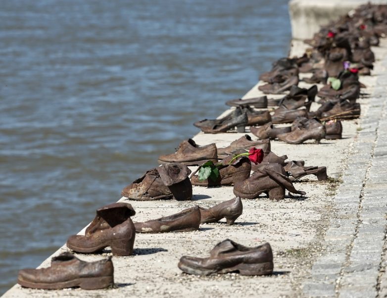 В Пеште расположен самый пронзительный памятник едва ли не всей Венгрии: на набережной Дуная в ряд расставлены 60 пар чугунных туфель и ботинок — мужских, женских, детских.