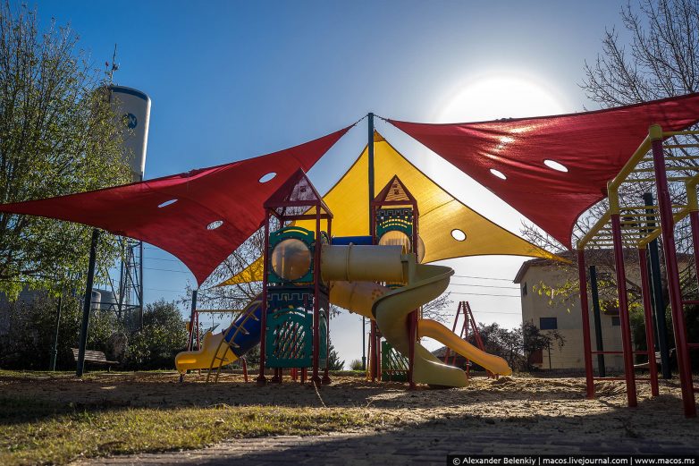 6, Инфраструктура здесь хорошая. Детская площадка, заботливо прикрытая от жаркого солнца. Рядом есть детский сад.